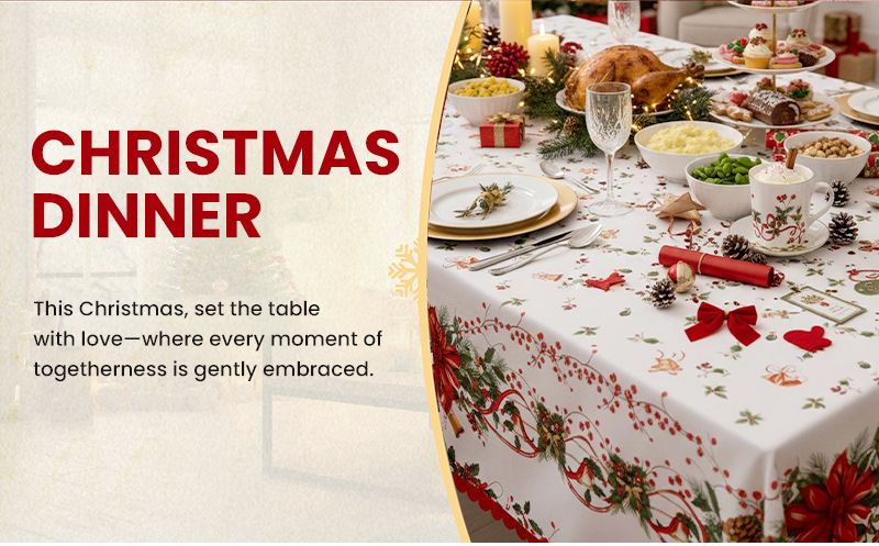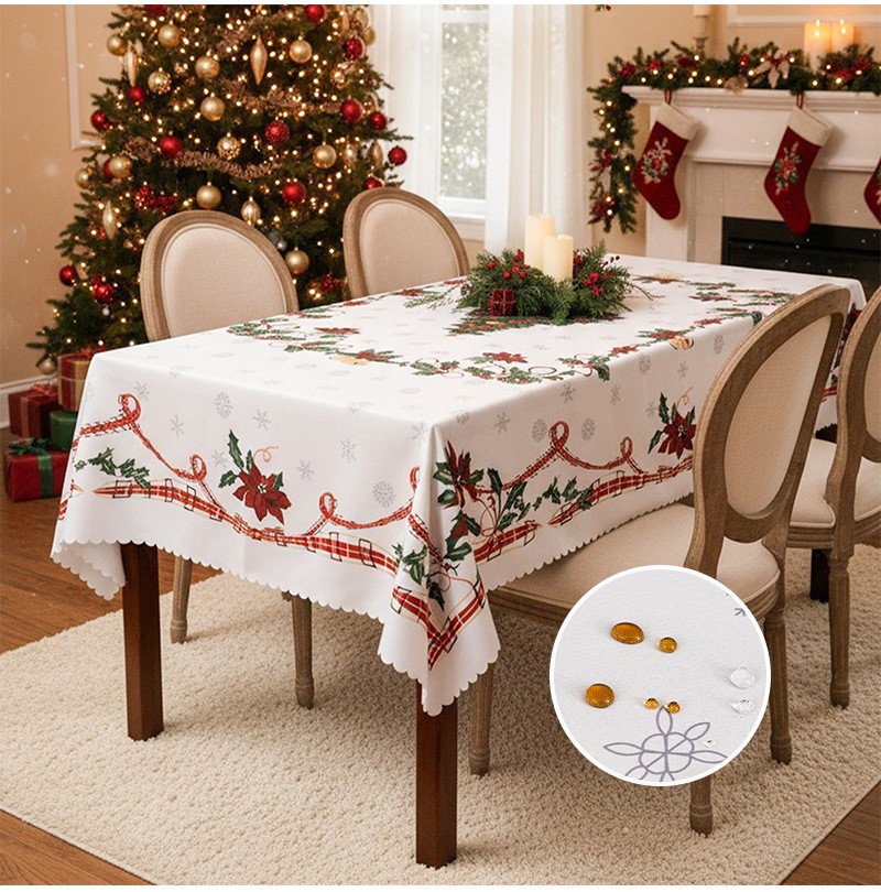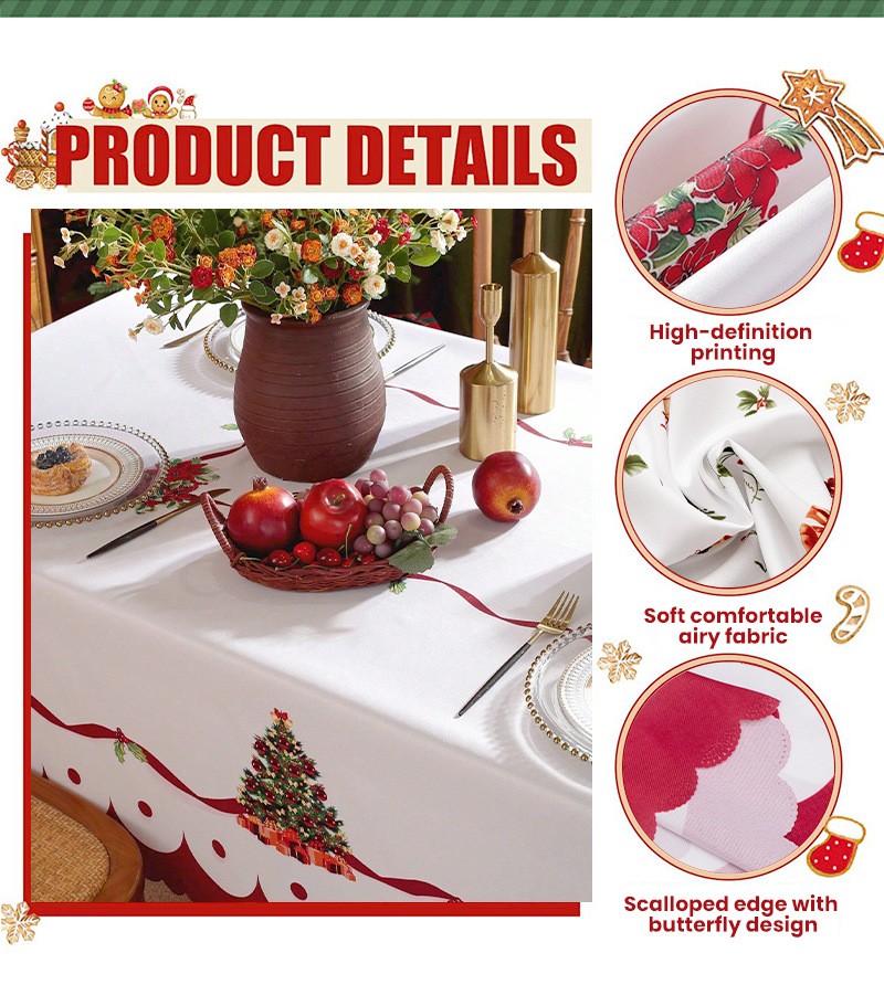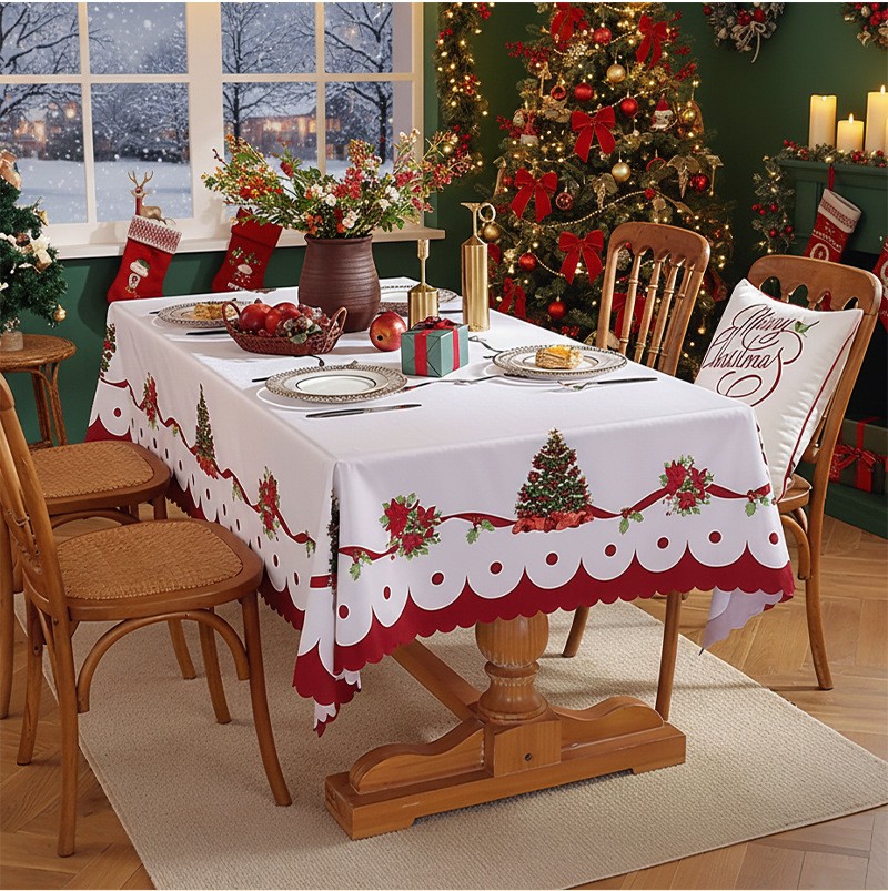 2025 New Christmas Print Tablecloth, Atmosphere-Enhancing Dining Table Cloth for Home, Waterproof and Wear-Resistant